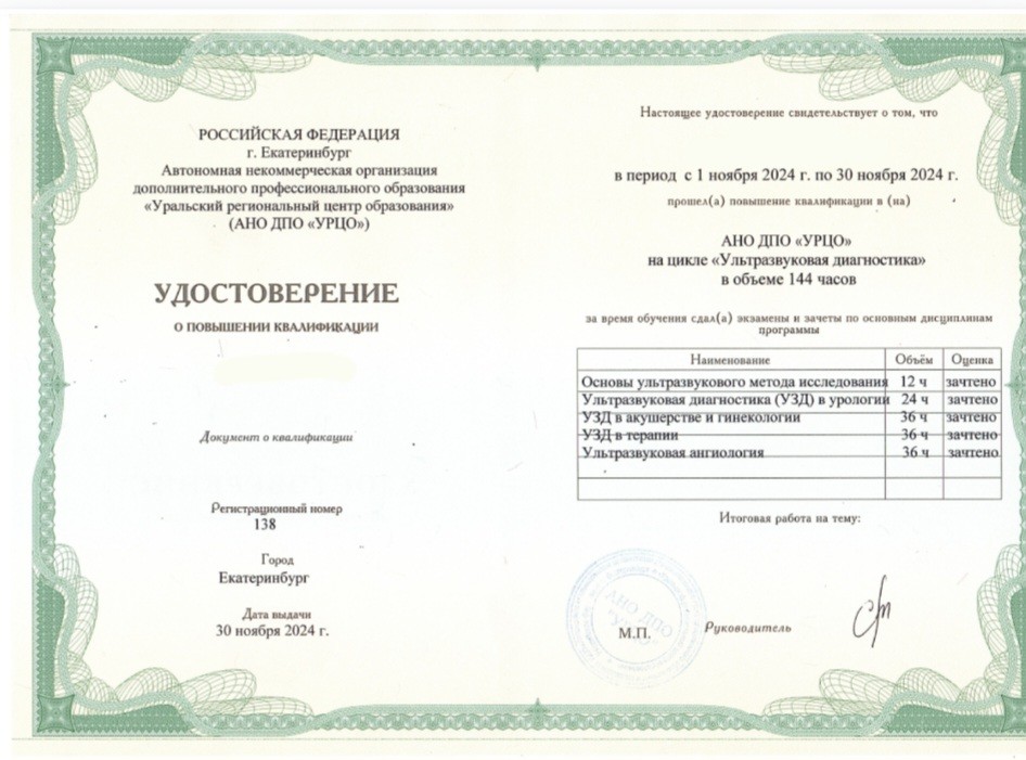- Документ о последнем повышении квалификации (сертификат/удостоверение).